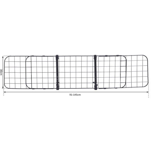 PawHut Heavy Duty Pet Dog Car Barrier Adjustable Ventilated Mesh Wire Guard Auto Vehicle Fence Protector SUVs Black
