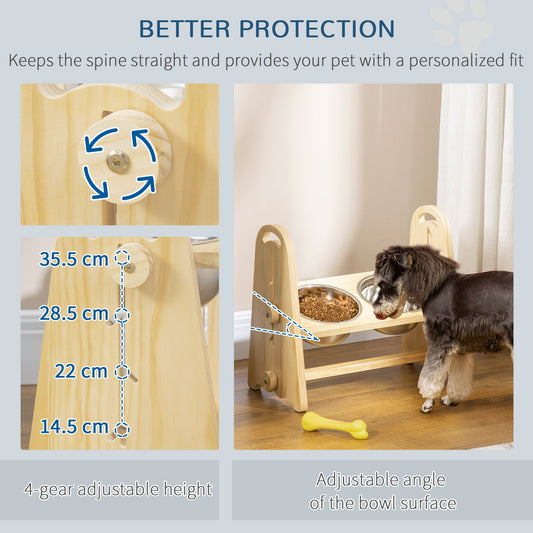 PawHut Raised Dog Bowls with Stand Adjustable Raised Pet Feeder with 2 Removable Stainless Steel Bowls for Small to Extra Large Dogs