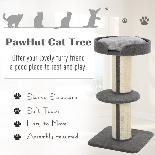 PawHut 70cm Cat Tree for Indoor Cats Durable Natural Sisal Scratching Posts Hammock Bed Kitty Activity Center Grey