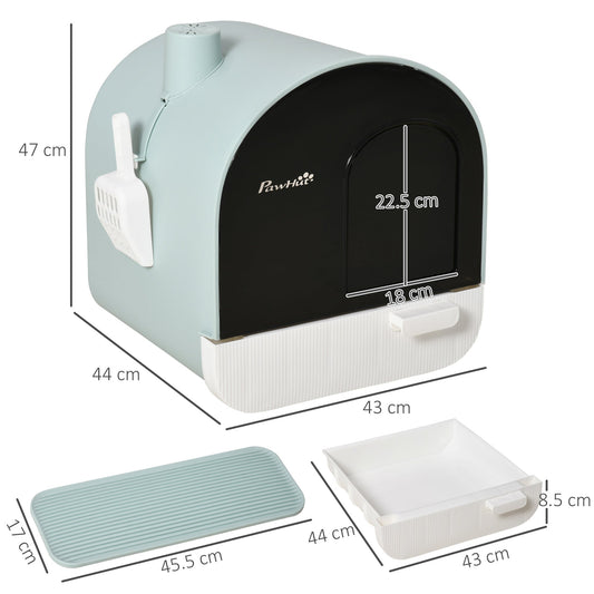 PawHut Cats Rooftop Plastic Easy Clean Litter Box Blue