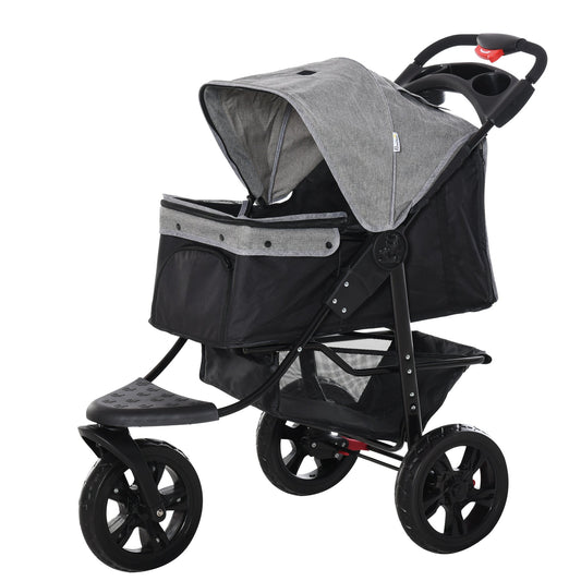 PawHut Pet Travel Stroller Cat Dog Pushchair Trolley Puppy Jogger Carrier Three Wheels for Small Miniature DogsGrey