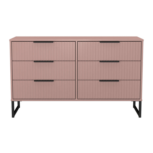 Fluted Large Chest of Drawers Pink 6 Drawers 115cm