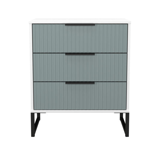 Fluted Chest of Drawers Teal & White 3 Drawers 76cm
