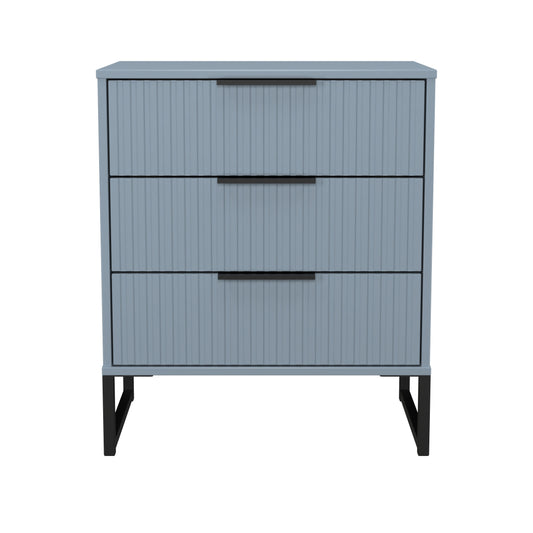 Fluted Chest of Drawers Light Blue 3 Drawers 76cm