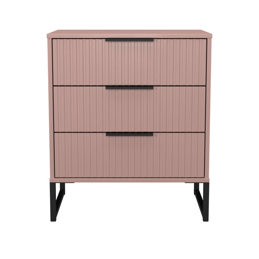 Fluted Chest of Drawers Pink 3 Drawers 76cm