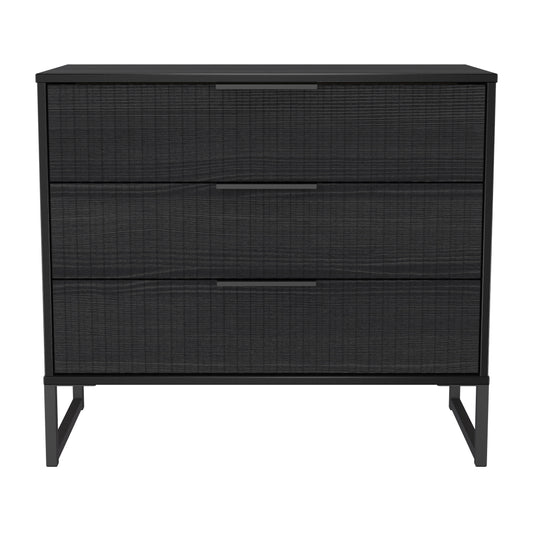 Fluted Chest of Drawers Black 3 Drawers 77cm