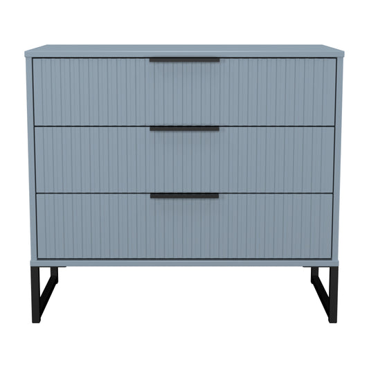 Fluted Chest of Drawers Light Blue 3 Drawers 77cm