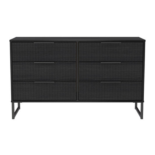 Fluted Large Chest of Drawers Black 6 Drawers 115cm