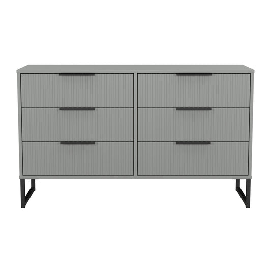 Fluted Large Chest of Drawers Grey 6 Drawers 115cm