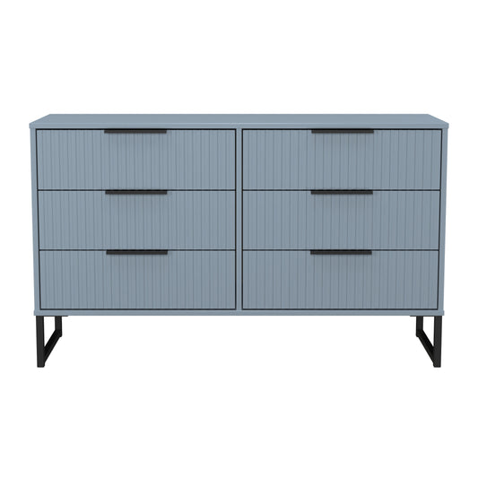 Fluted Large Chest of Drawers Light Blue 6 Drawers 115cm