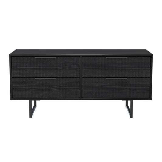 Fluted Large Chest of Drawers Black 4 Drawers 115cm