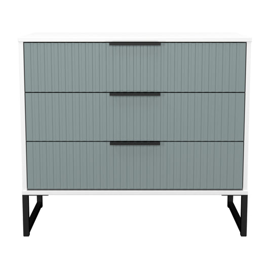 Fluted Chest of Drawers Teal & White 3 Drawers 77cm
