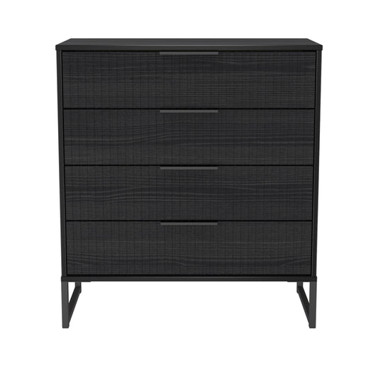 Fluted Chest of Drawers Black 4 Drawers 93cm