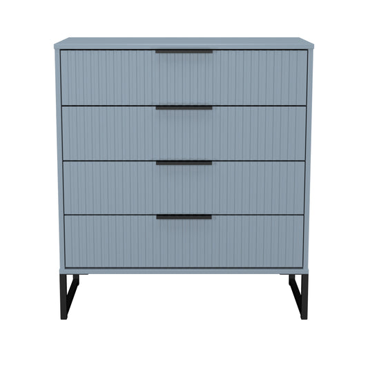 Fluted Chest of Drawers Light Blue 4 Drawers 93cm