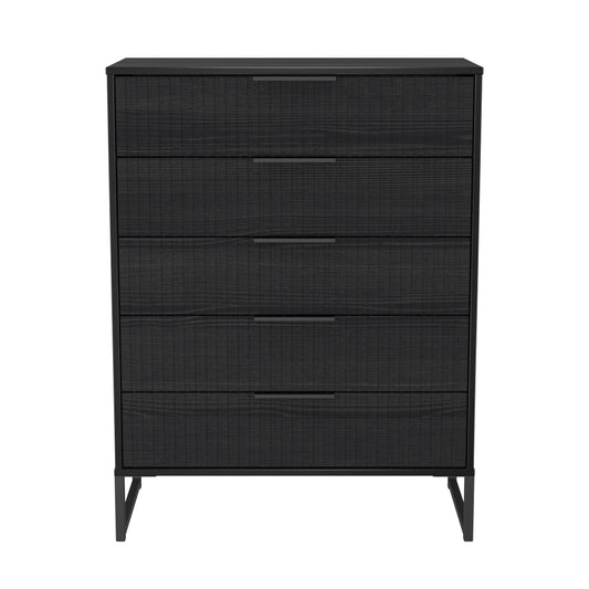 Fluted Tall Chest of Drawers Black 5 Drawers 109cm