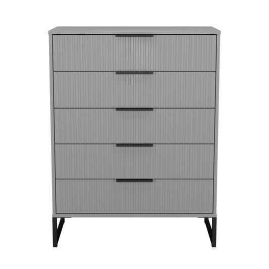 Fluted Tall Chest of Drawers Grey 5 Drawers 109cm