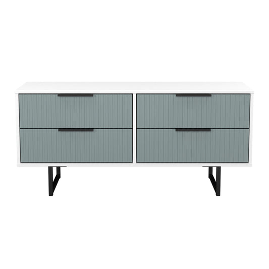 Fluted Large Chest of Drawers Teal & White 4 Drawers 115cm