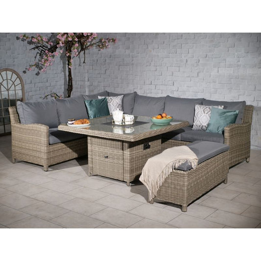 Wentworth Rattan Garden Corner Sofa by Royalcraft - 8 Seats Grey Cushions