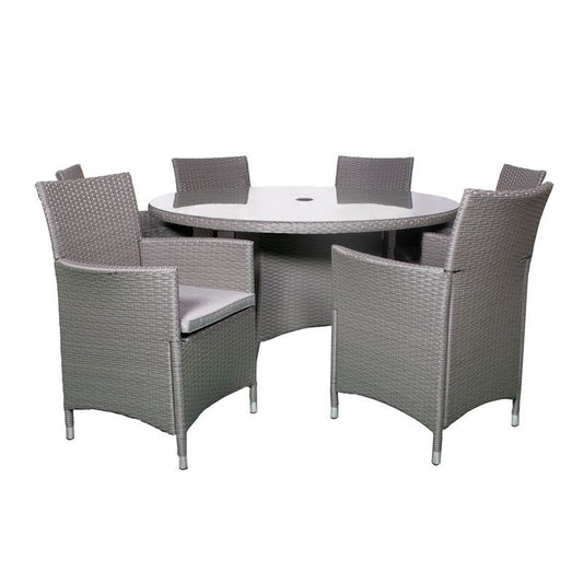 Nevada Rattan Garden Patio Dining Set by Royalcraft - 6 Seat Grey Cushions