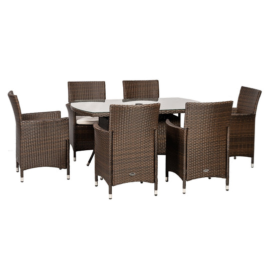 Outsunny Rattan Garden Furniture Dining Set 6-Seater Patio Rectangular Table Cube Chairs Outdoor Fire Retardant Sponge Brown