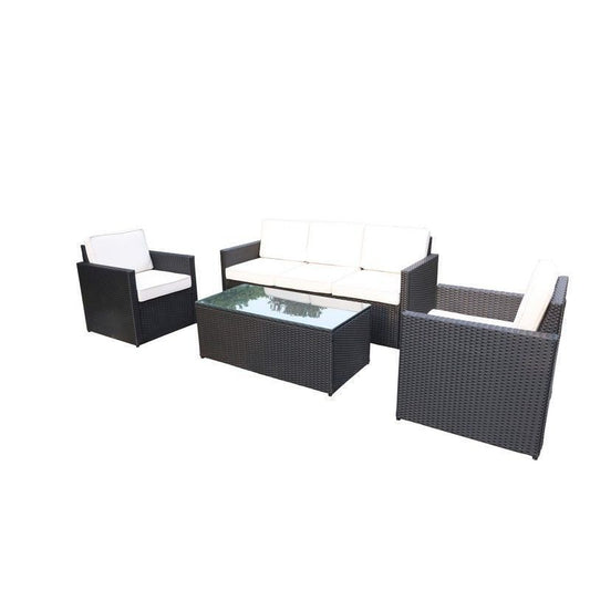 Outsunny 4-Seater Rattan Sofa Set Garden Outdoor Sectional Sofa Coffee Table Metal Frame With cushion Pillows-Black