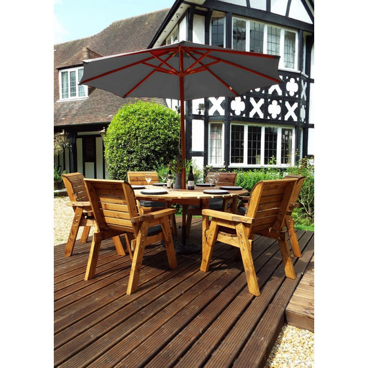 Scandinavian Redwood Garden Patio Dining Set by Charles Taylor - 6 Seats Grey Cushions