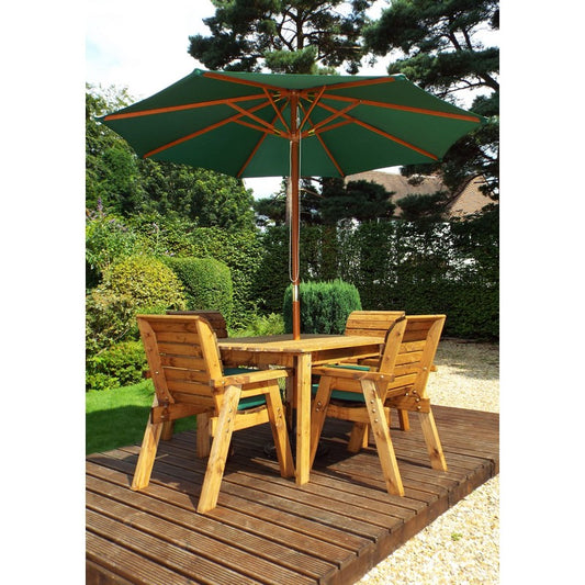 Scandinavian Redwood Garden Patio Dining Set by Charles Taylor - 4 Seats Green Cushions