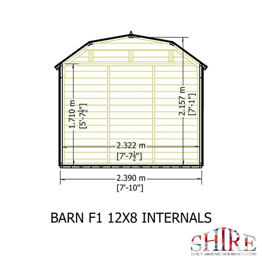 Shire Barn 11' 9" x 7' 10" Barn Shed - Premium Coated Shiplap