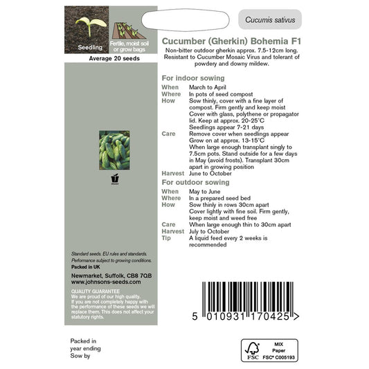 Johnsons Cucumber Gherkin Bohemia F1 Seeds