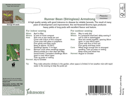 Johnsons Runner Bean Armstrong Stringless Seeds