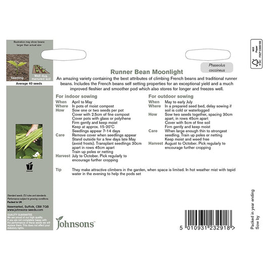 Sold outJohnsons Runner Bean Moonlight Seeds