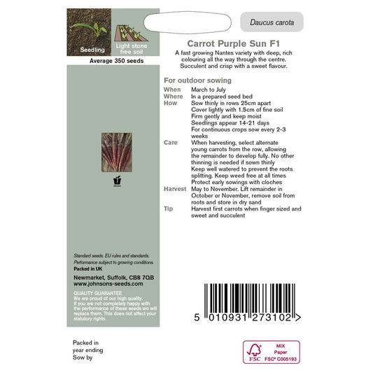 Sold outJohnsons Carrot Purple Sun F1 Seeds