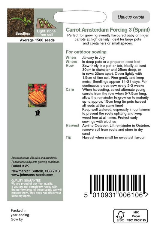 Johnsons Carrot Amsterdam Forcing 3 Sprint Seeds
