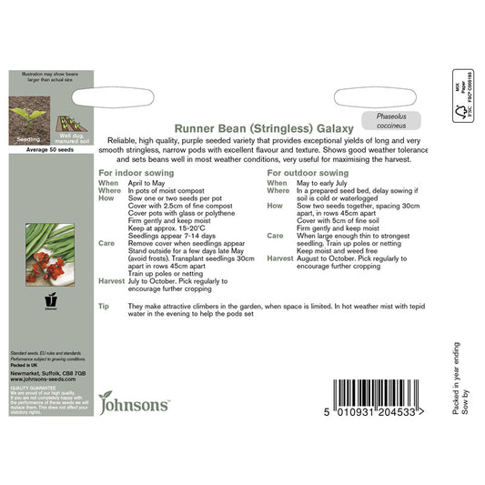Johnsons Runner Bean Stringless Galaxy Seeds