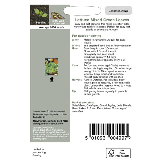 Johnsons Lettuce Mixed Green Leaves Seeds