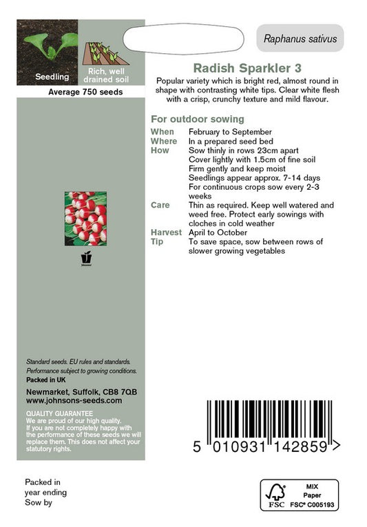 Sold outJohnsons Radish Sparkler 3 Seeds