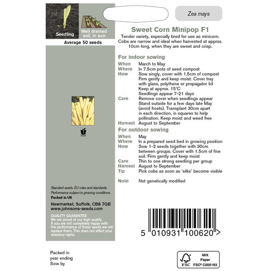 Sold outJohnsons Sweet Corn Minipop F1 Seeds