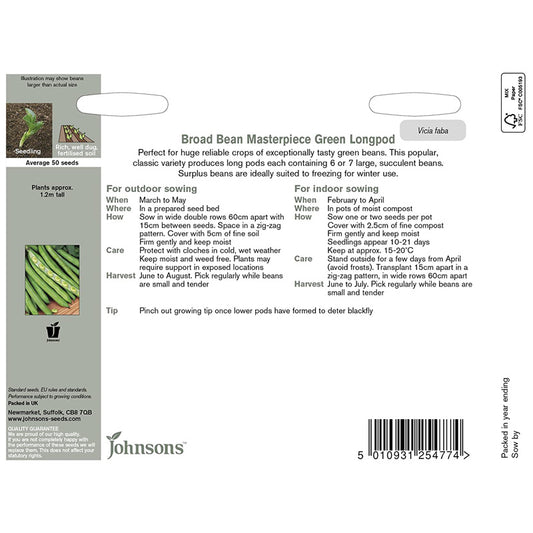 Johnsons Broad Bean Masterpiece Green Longpod Seeds