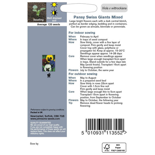 Johnsons Pansy Swiss Giants Mixed Seeds