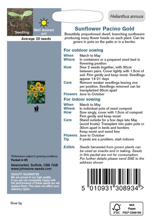 Sold outJohnsons Sunflower Pacino Gold Seeds