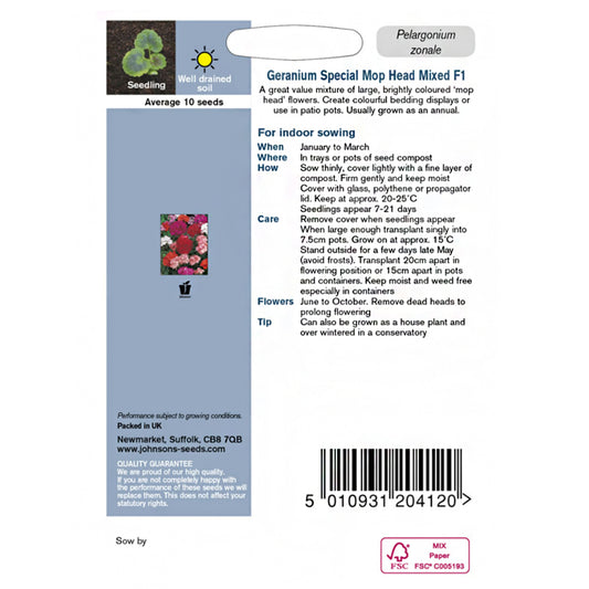 Johnsons Geranium Special Mop Head Mixed F1 Seeds