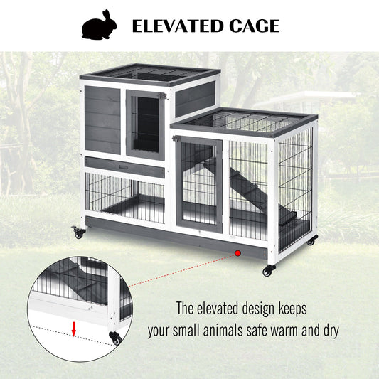 PawHut Small Animals 2-Tier Fir Wood Rabbit Hutch Indoor Grey