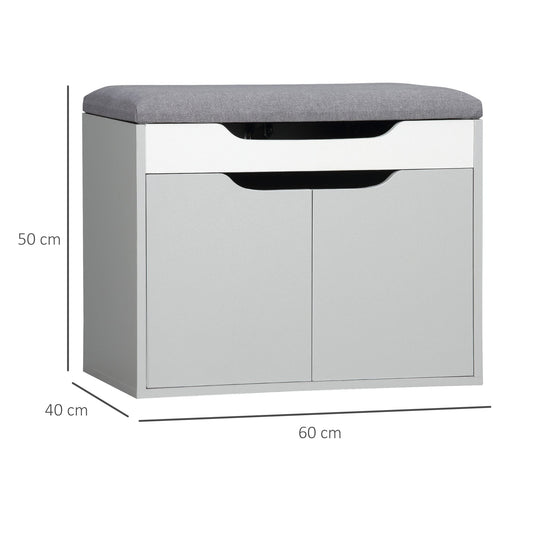 Shoe Storage Bench w/ Cushion 7 Compartments Adjustable Shelves White and Grey