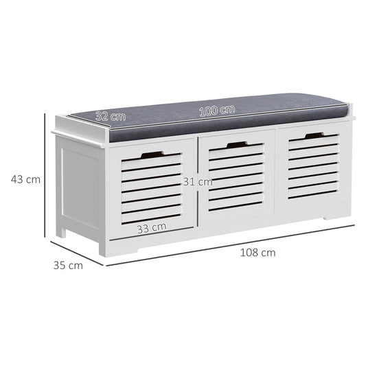 Shoe Storage Bench with 3 Drawers & Removable Grey Seat Cushion Hallway Organisation furniture