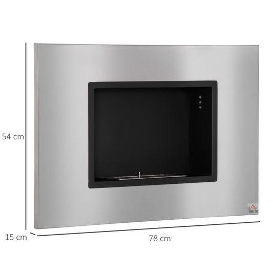 3 Hour Ethanol Fireplace Wall Mounted Silver