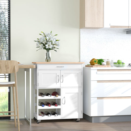 Homcom Kitchen Island with Storage Rolling Kitchen Serving Cart with Rubber Wood Top Towel Rack Storage Drawer Cabinet White