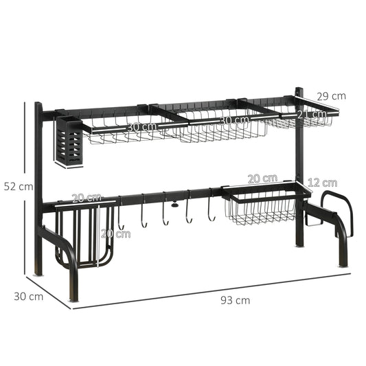 Space Saving 2 Tier Adjustable Dish Drainer Over The Sink Dish Drying Rack