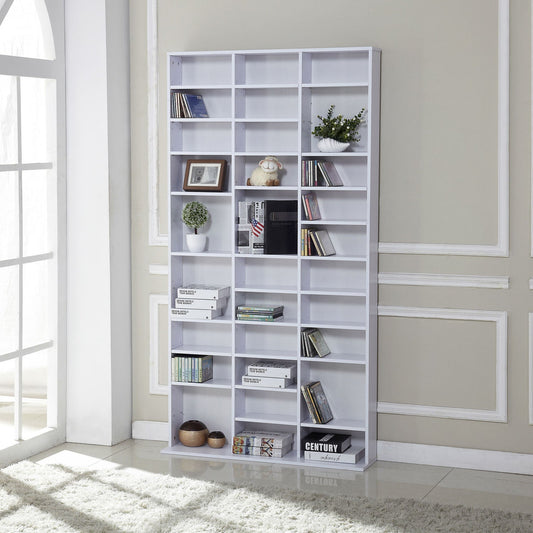 480 CD / 312 DVD Storage Shelf Rack Media Storage Unit Shelves Racks Wooden Bookcase Display Unit with 4 Adjustable Shelves White