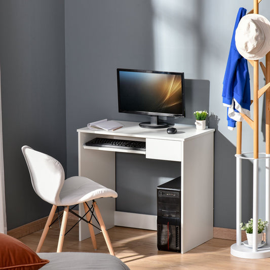 Homcom Compact Computer Table With Keyboard Tray Drawer Study Office Working Writing Desk White