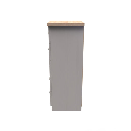 Vienna Tall Tallboy Off-white & Light Oak 5 Drawers 37cm
